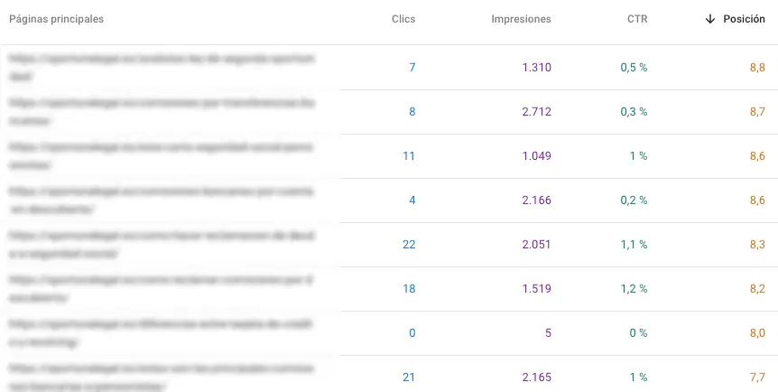 Es el típico punto donde un buen empujón de enlaces internos te puede dar el salto de impresiones a clics.