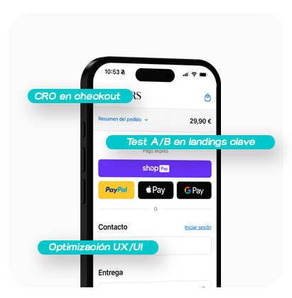 Testing constante para mejorar conversión y rentabilidad mes a mes para que tu ecommerce escale.